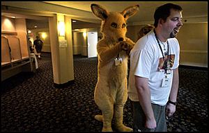 In addition to the costumes, the event also included erotica. Numerous dealers offered drawings depicting scantily clad half-human, half-animal creatures.